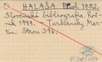 HALAŠA Pavol 1952 Slovenská bibliografia. Ročnik 1949.