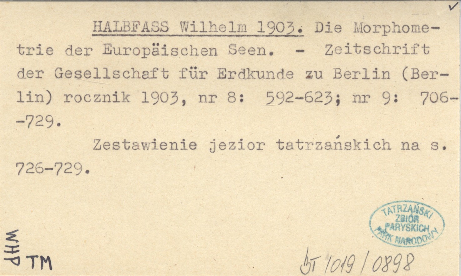 Zeitschrift der Gesellschaft für Erdkunde zu Berlin (Berlin) , R. 1903, nr 8: 592-623; nr 9: 706-729. Zestawienie jezior tatrzańskich na S. 726-729.