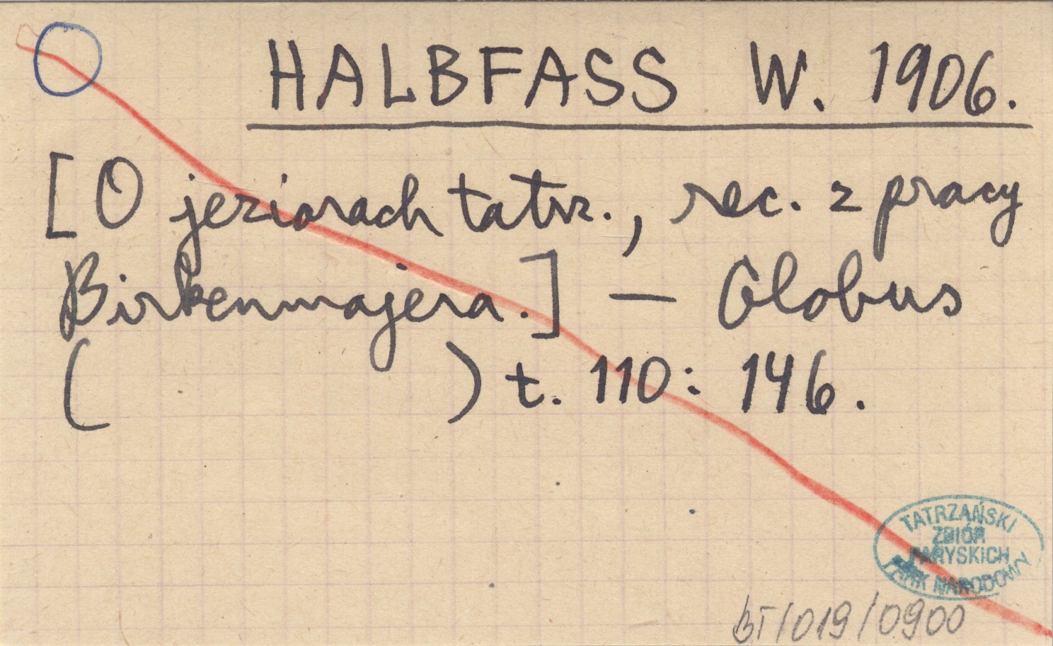 HALBFASS W. 1906 [O jeziorach tatrzańskich, rec. z pracy Birkenmajera].