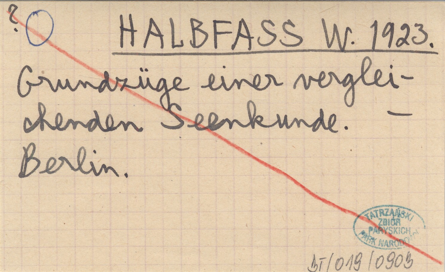 HALBFASS W. 1923 Grundzüge einer vergleichenden Seenkunde.