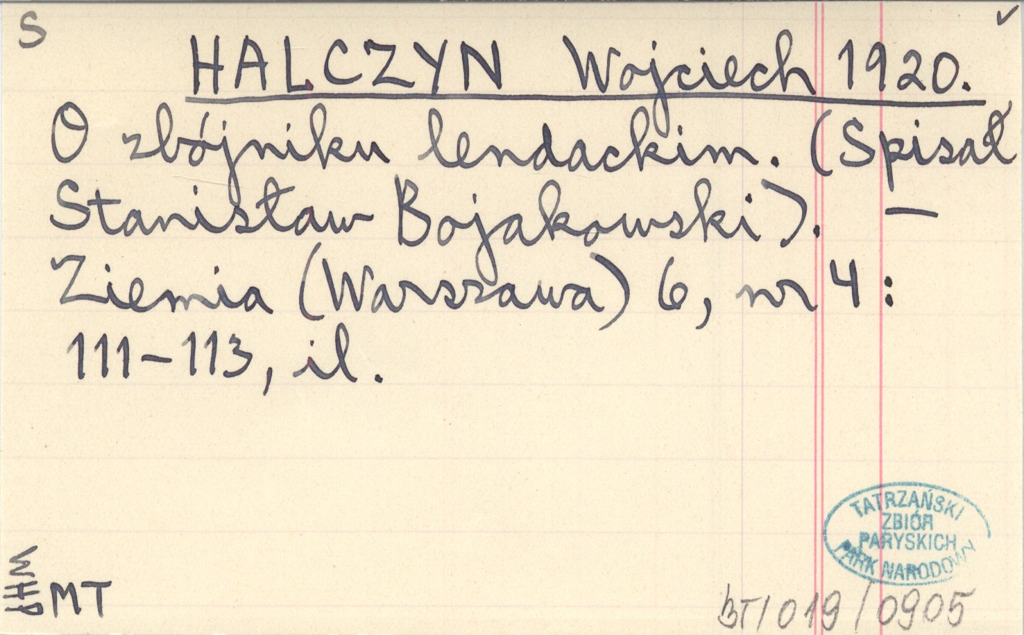 HALCZYN Wojciech 1920 O zbójniku lendackim. (Spisał Stanisław Bojakowski).