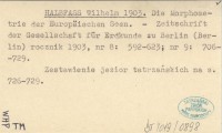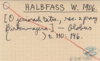 HALBFASS W. 1906 [O jeziorach tatrzańskich, rec. z pracy Birkenmajera].
