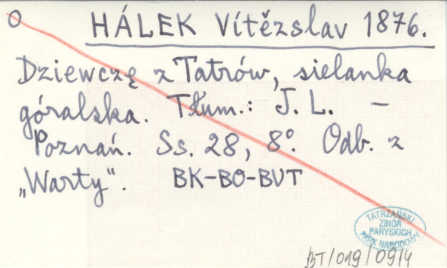 HÁLEK Vítězslav 1876 Dziewczę z Tatrów, sielanka górska. Tłum.: J. L.