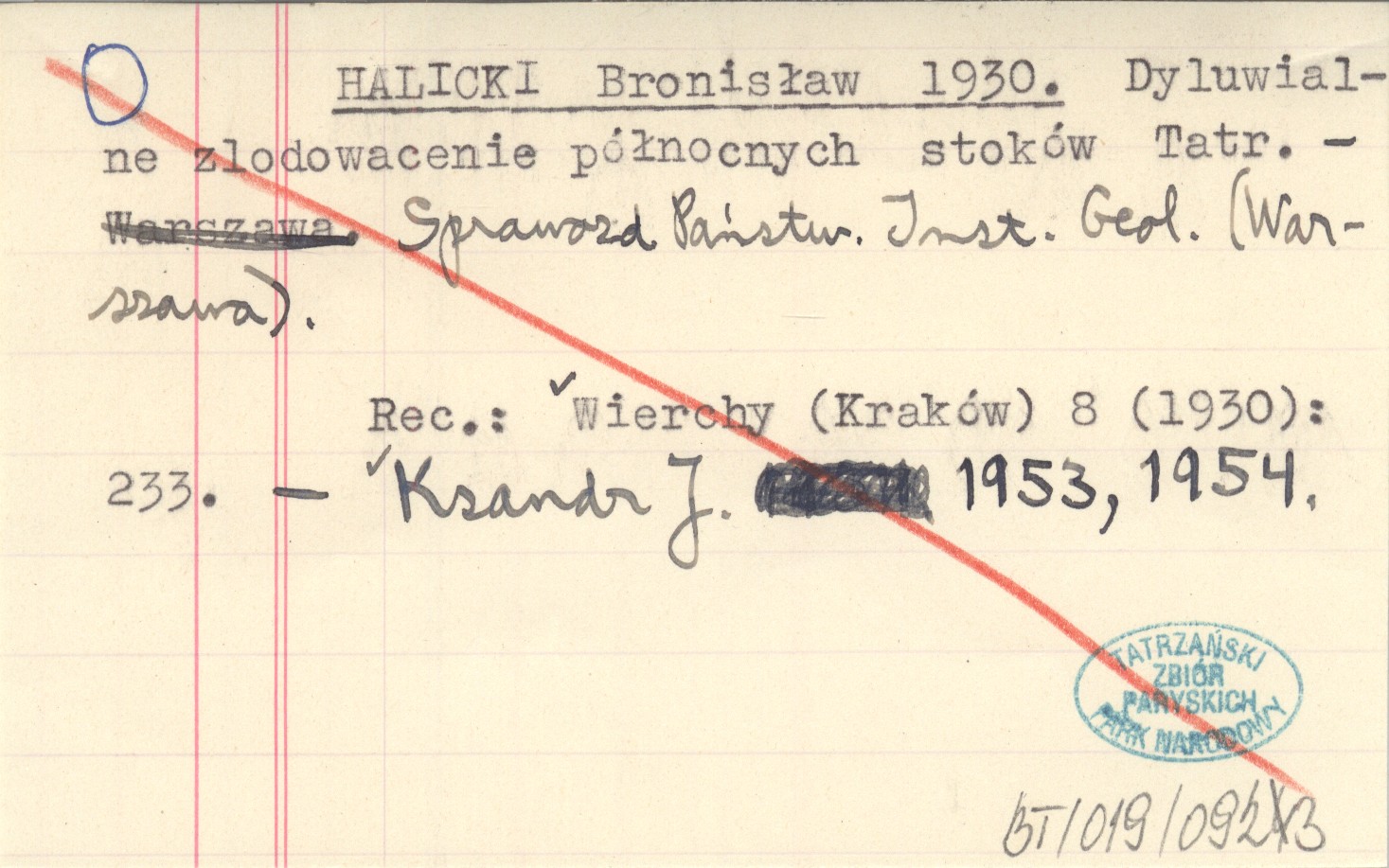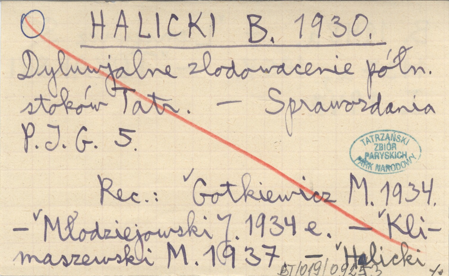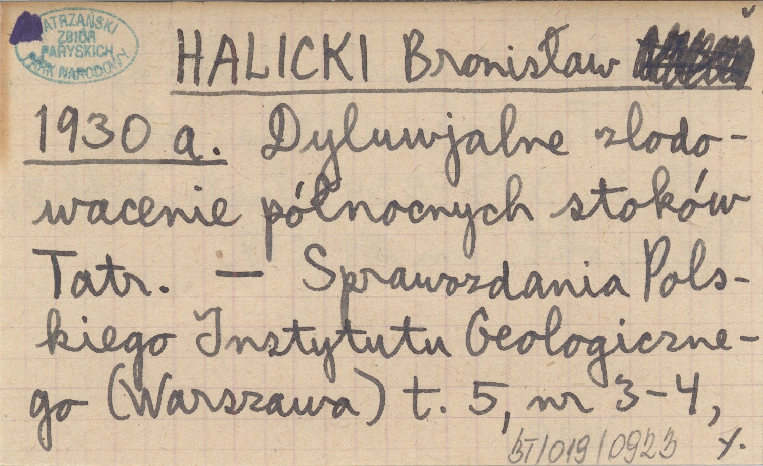 HALICKI Bronisław 1930 a Dyluwjalne zlodowacenie północnych stoków Tatr.