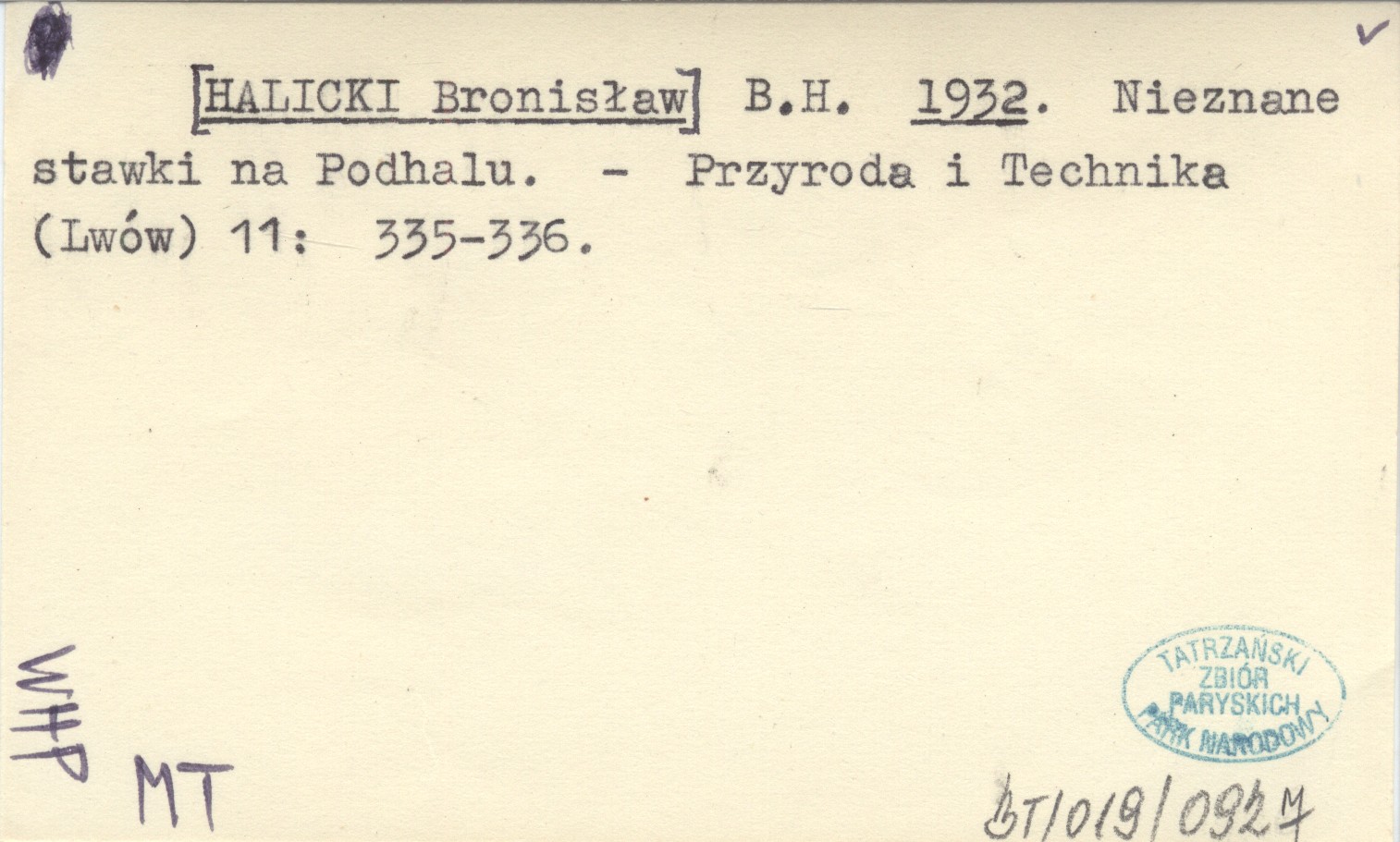 B. H. [HALICKI Bronisław] 1932 Nieznane stawki na Podhalu.
