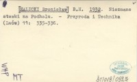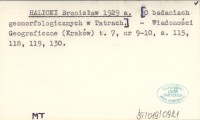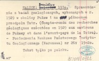 HALICKI Bronisław 1930 Sprawozdanie z badań geologicznych, wykonanych w r. 1929 w okolicy Puław i na północnem przedpolu Tatr. (Compte-rendu des recherches géologiques exécutées en 1929 aux environs de Puławy et dans l'avant-pays de la Tatra).