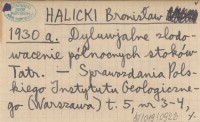 HALICKI Bronisław 1930 a Dyluwjalne zlodowacenie północnych stoków Tatr.