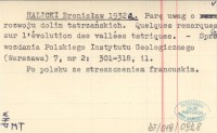 HALICKI Bronisław 1932 a Parę uwag o rozwoju dolin tatrzańskich. Quelques remarques sur l'évolution des vallées tatriques.