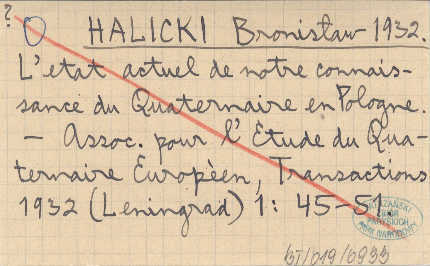 HALICKI Bronisław 1932 L'etat actuel de notre connaissance du Wuaternaire en Pologne.