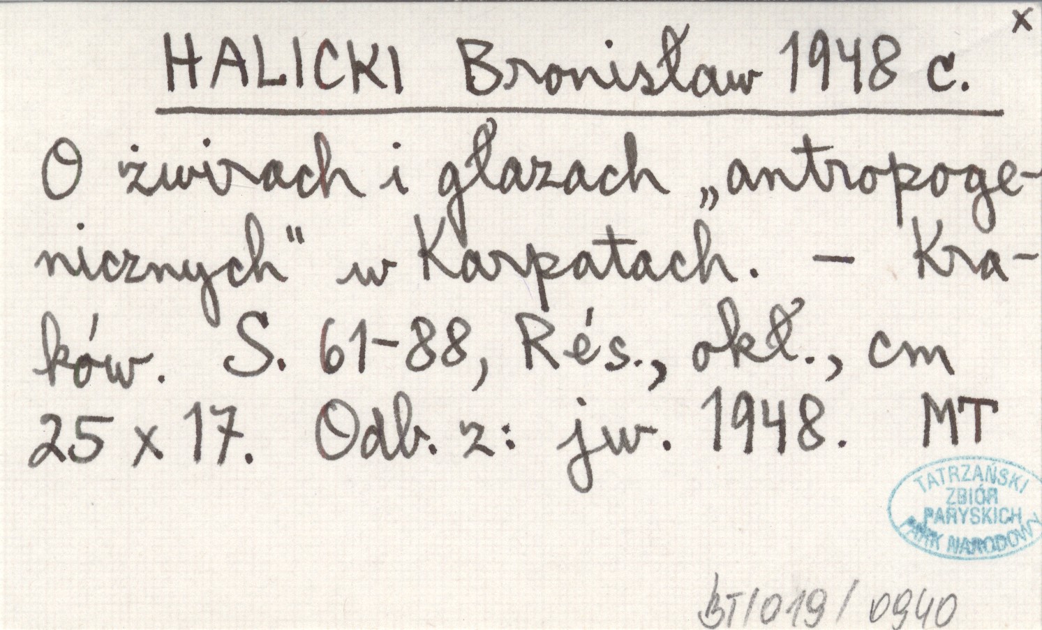 HALICKI Bronisław 1948 c O żwirach i głazach "antropogenicznych" w Karpatach.