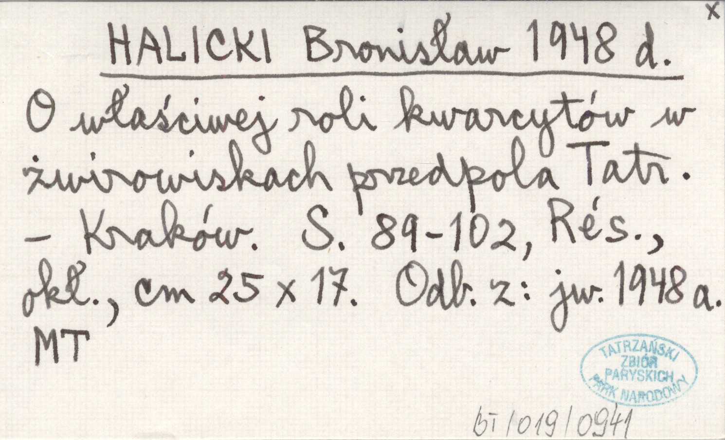 HALICKI Bronisław 1948 d O właściwej roli kwarcytów w żwirowiskach przedpola Tatr.
