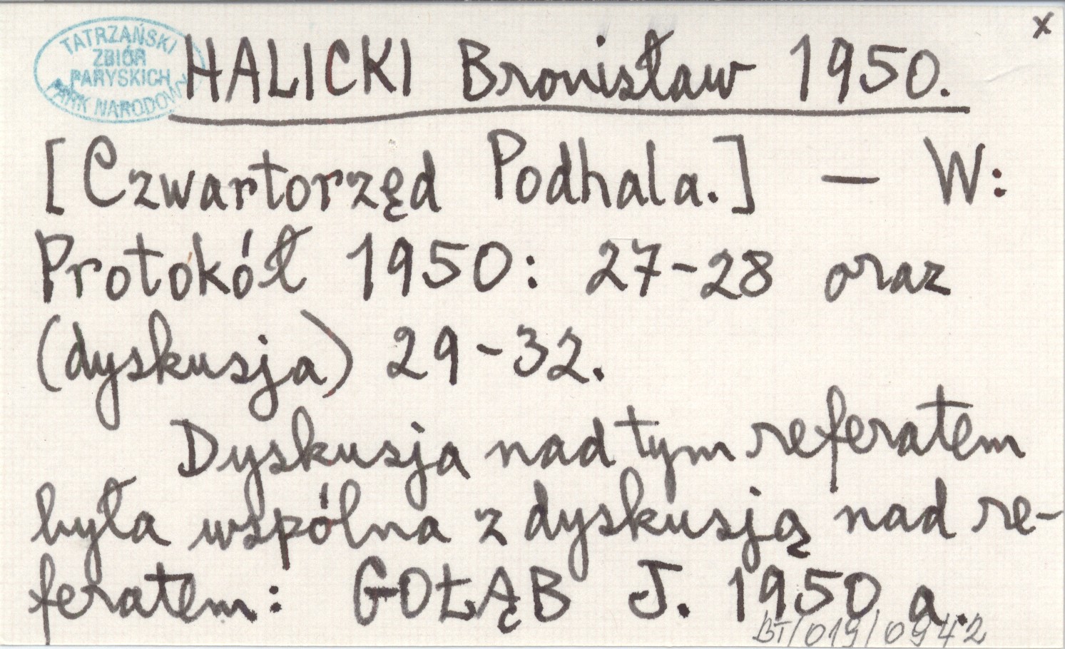 Protokół 1950: 27-28 oraz (dyskusja) 29-32. , Dyskusja nad tym referatem była wspólna z dyskusją nad referatem: GOŁĄB J. 1950 a.