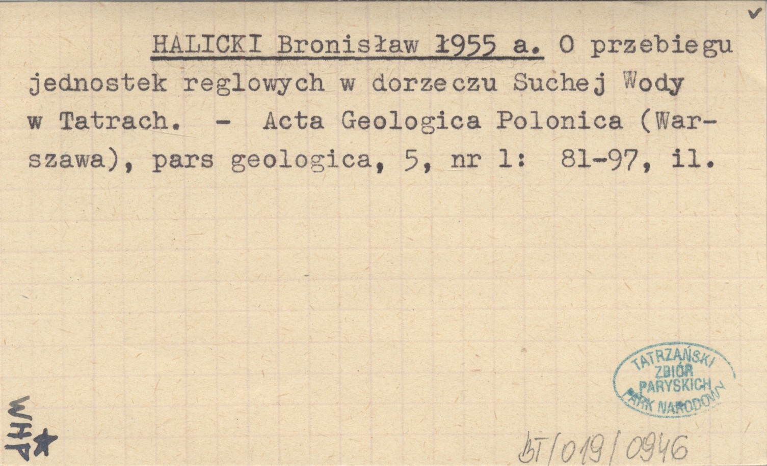 HALICKI Bronisław 1955 a O przebiegu jednostek reglowych w dorzeczu Suchej Wody w Tatrach.