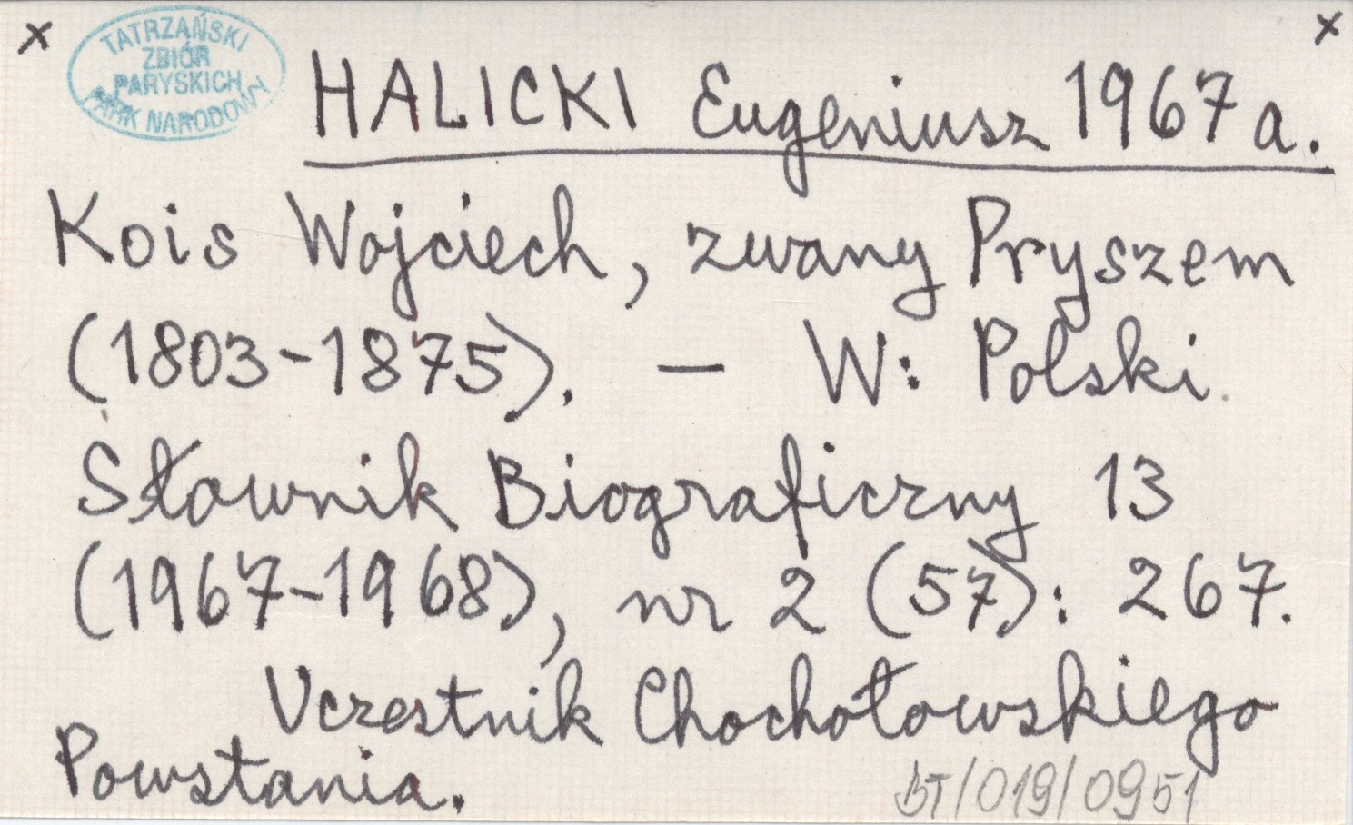 HALICKI Eugeniusz 1967 a Kois Wojciech, zwany Pryszem (1803-1875).