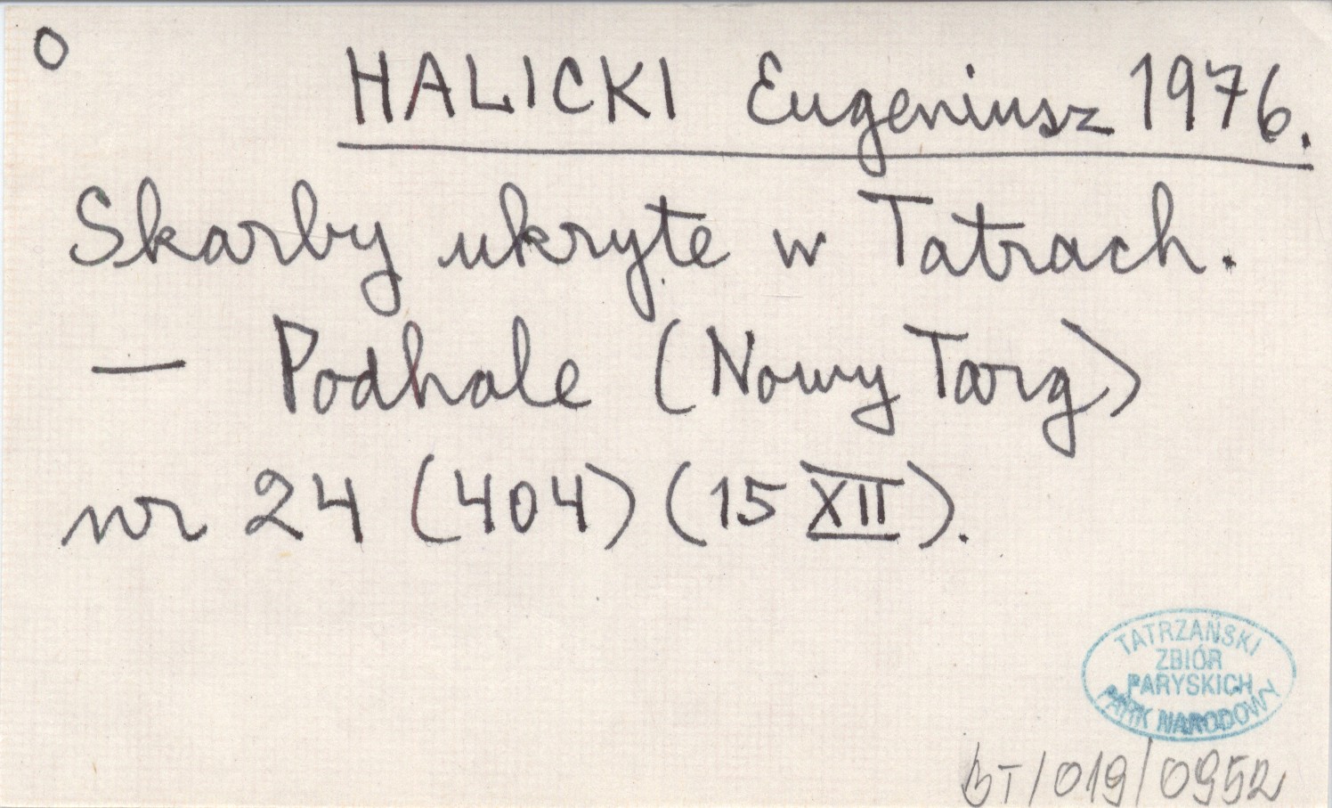Projekt Digitalizacja fiszek z Bibliografią Tatr i Podtatrza Witolda Henryka Paryskiego jest finansowany ze środków Ministra Kultury i Dziedzictwa Narodowego oraz Tatrzańskiego Parku Narodowego.
