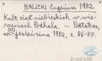 HALICKI Eugeniusz 1982 Kult ciał niebieskich w wierzeniach Podhala.