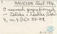 HALICZER Józef 1936... O nazwach geograficznych.