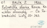 HALÍK J. 1926 Pulsatilla slavica Reuss. Koniklec slovenský.