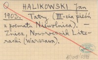 HALIKOWSKI Jan 1903 Tatry (III-cia pieść z poematu Niewolnica).