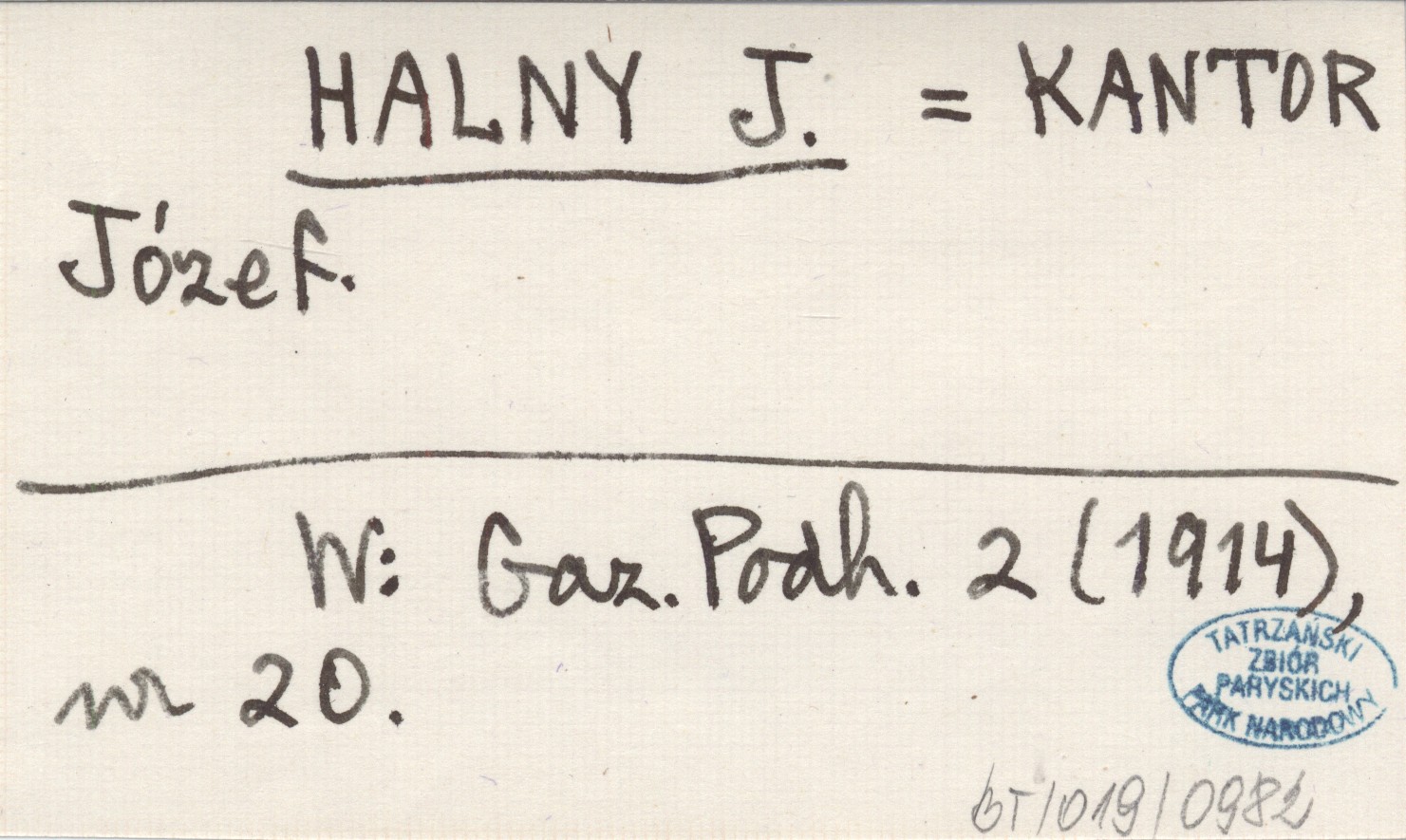 HALNY J. KANTOR Józef Gazeta Podhalańska 2 (1914), nr 20.