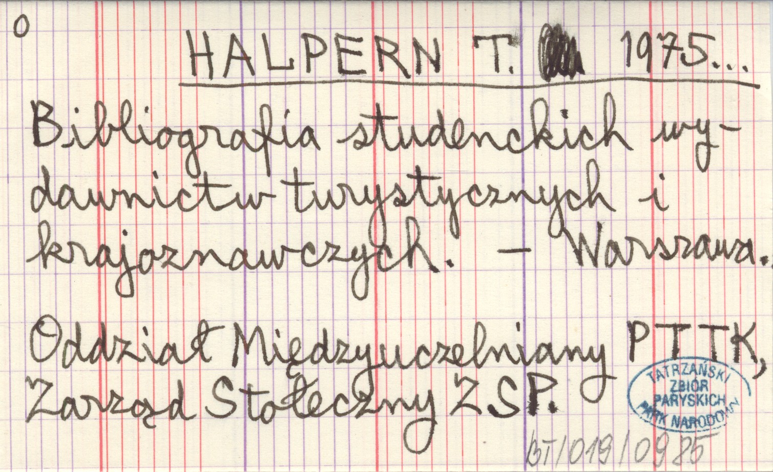 HALPERN T. 1975... Bibliografia studenckich wydawnictw turystycznych i krajoznawczych.