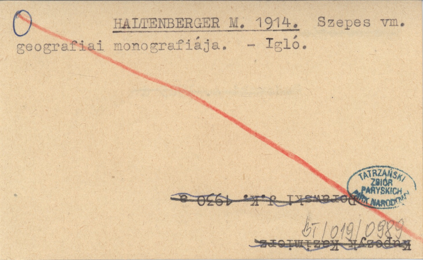 HALTENBERGER M. 1914 Szepes vm. geografiai monografiája.