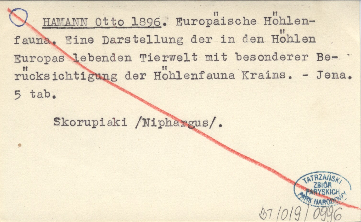 HAMANN Otto 1896 Europäische Höhlenfauna. Eine Darstellung der in den Höhlen Europas lebenden Tierwelt mit besonderer Berücksichtigung der Höhlenfauna Krains.