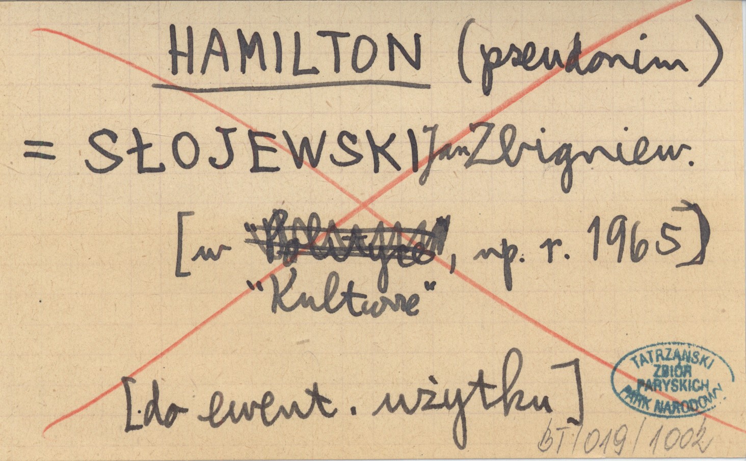 HAMILTON SŁOJEWSKI Jan Zbigniew [W "Kulturze", np. r. 1965]. [Do ewentualnego użytku].
