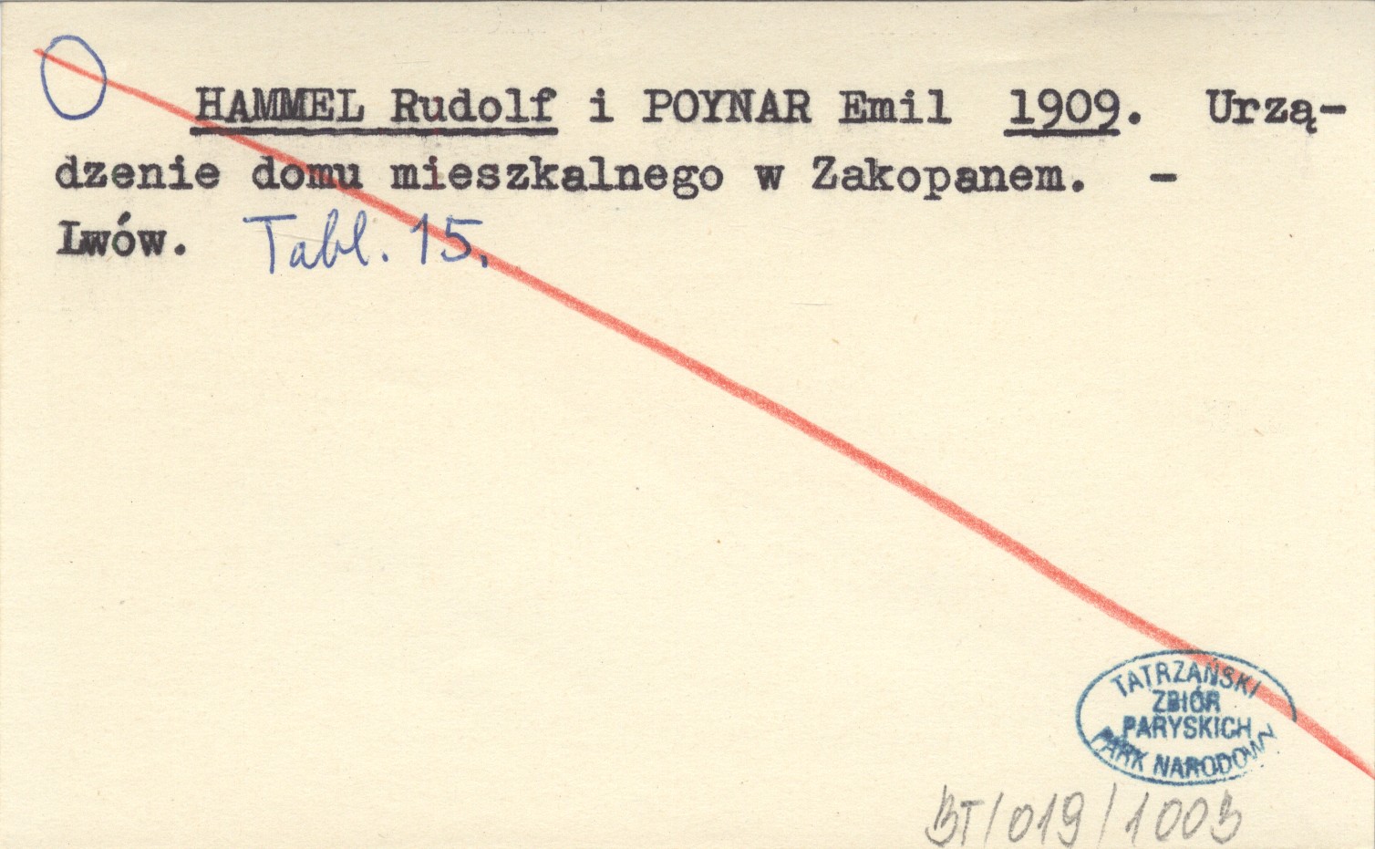 HAMMEL Rudolf POYNAR, Emil. ; 1909 Urządzenie domu mieszkalnego w Zakopanem.