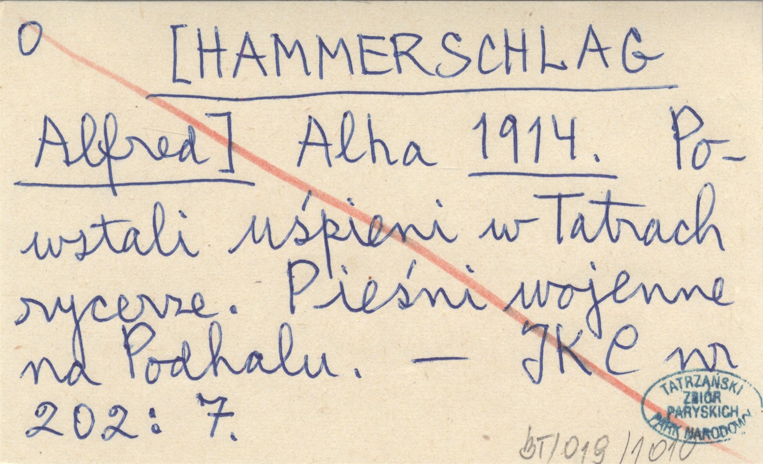 Alha [HAMMERSCHLAG Alfred] 1914 Powstali uśpieni w Tatrach rycerze. Pieśni wojenne na Podhalu.
