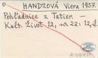 HANDZOVÁ Viera 1957 Pohľadnice z Tatier.