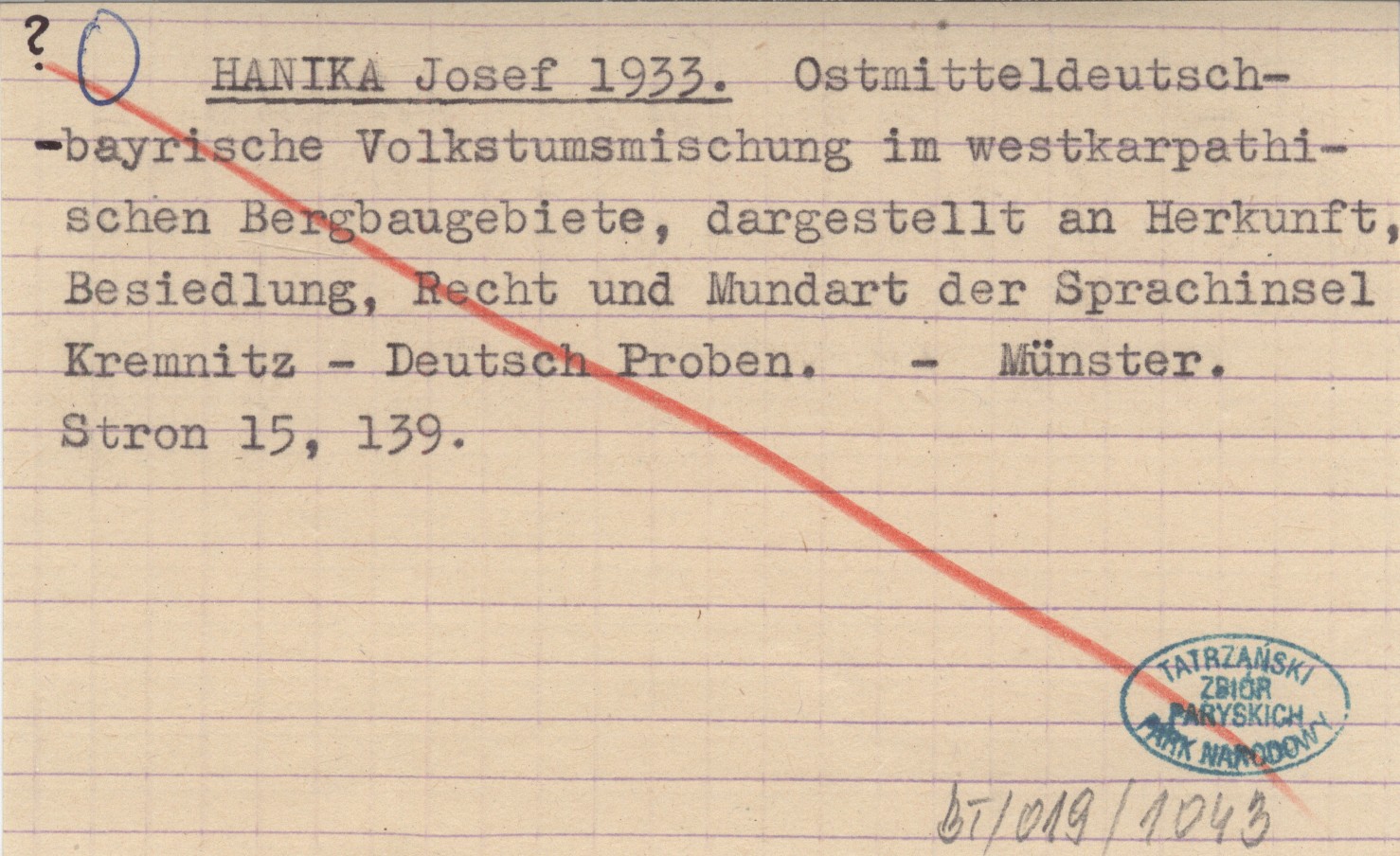 HANIKA Josef 1933 Ostmitteldeutsch-bayrische Volkstumsmischung im westkarpathischen Bergbaugebiete, dargestellt an Herkunft, Besiedlung, Recht und Mundart der Sprachinsel Kremnitz - Deutsch Proben.