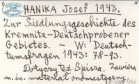 HANIKA Josef 1943 Zur Siedlungsgeschichte des Kremnitz-Deutschprobener Gebietes.