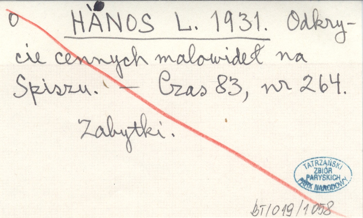 HANOS L. 1931 Odkrycie cennych malowideł na Spiszu.