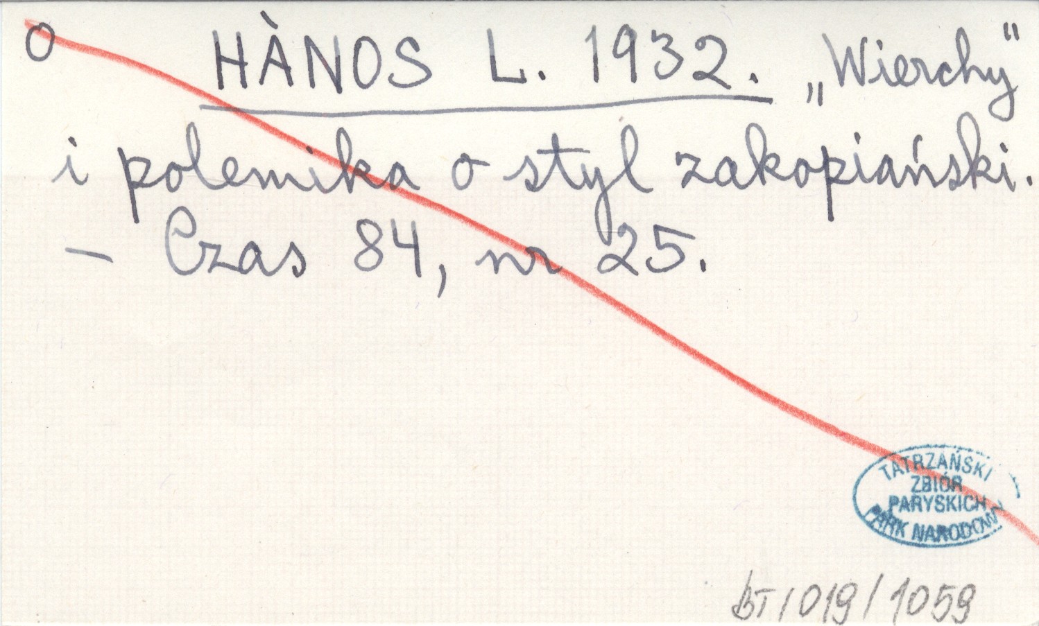 HANOS L. 1932 "Wierchy" i polemika o styl zakopiański.