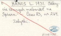 HANOS L. 1931 Odkrycie cennych malowide³ na Spiszu.