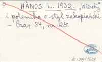 HANOS L. 1932 "Wierchy" i polemika o styl zakopiañski.