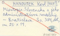 HANOUSEK Karol [1927?] Miestopis Slovenska a jeho administratívne rozdelenie.