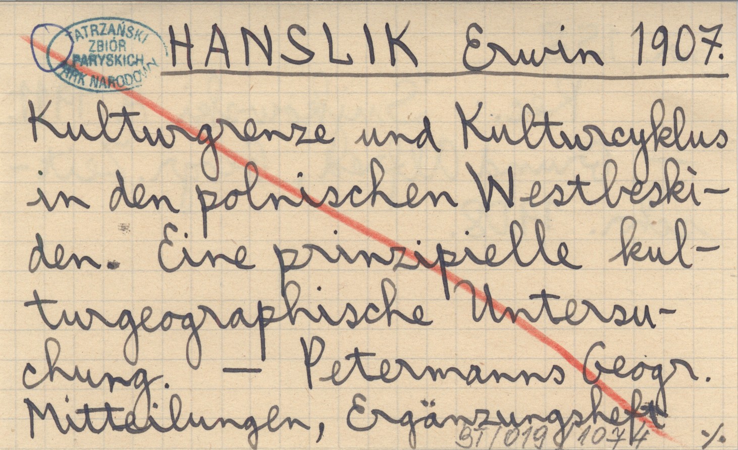 HANSLIK Erwin 1907 Kulturgrenze und Kulturcyklus in den polnischen Westbeskiden. Eine prinzipielle kulturgeographische Untersuchung.