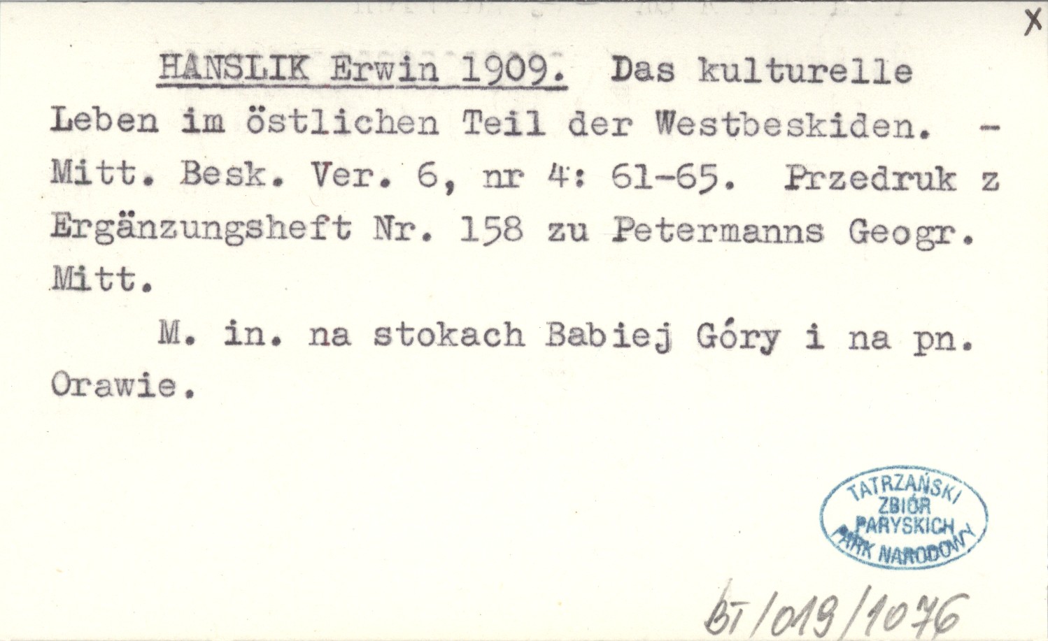 HANSLIK Erwin 1909 Das kulturelle Leben im östlichen Teil der Westbeskiden.
