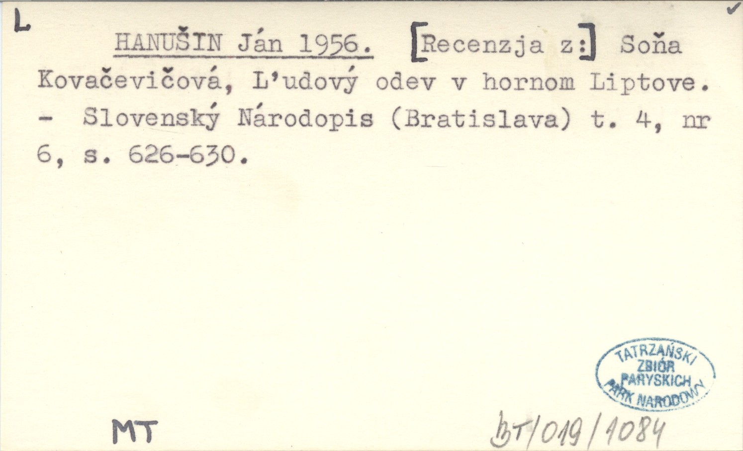 HANUŠIN Ján 1956 [Recenzja z:] Soňa Kovačevičová, Ľudový odev v hornom Liptove.