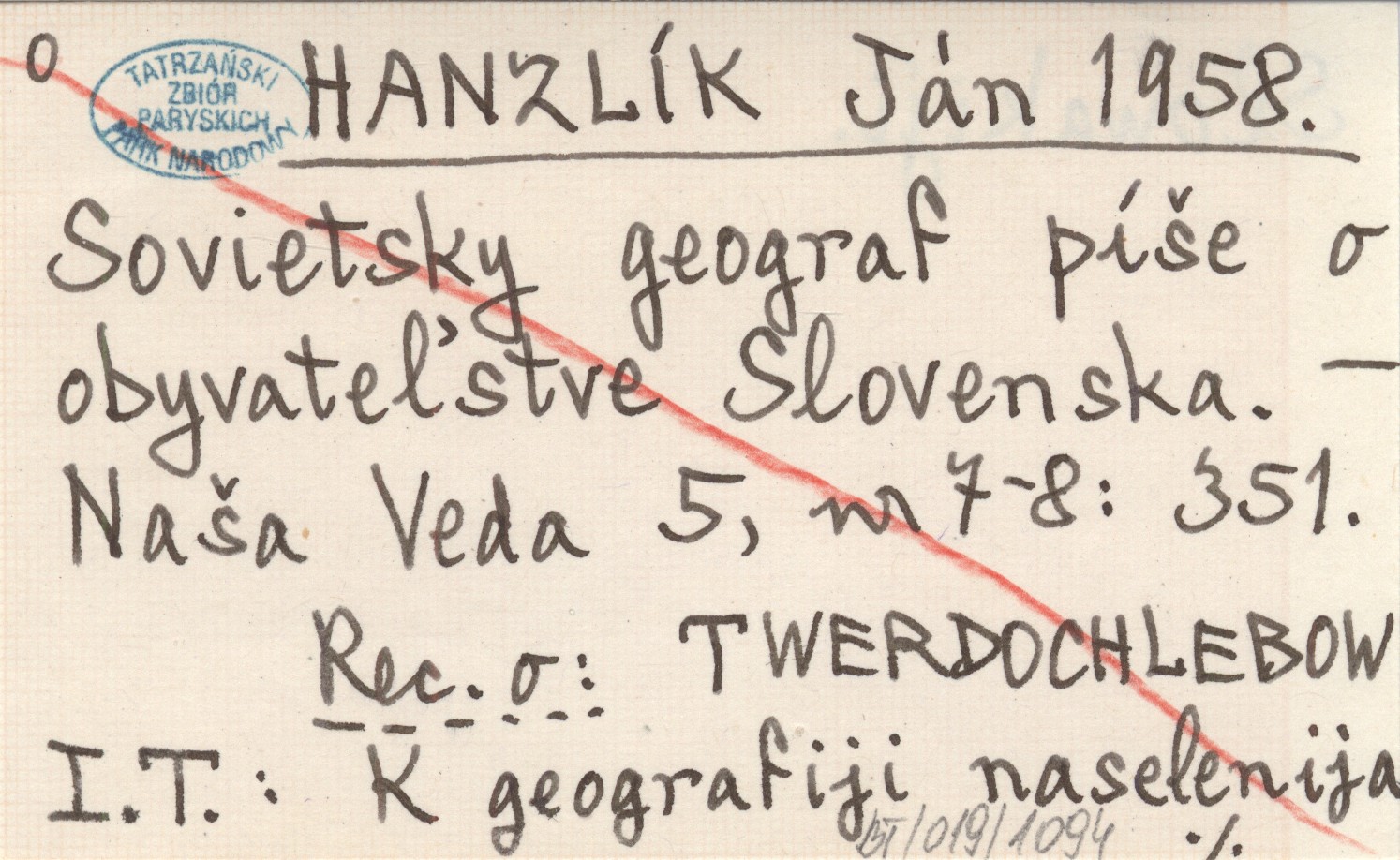 HANZLÍK Ján 1958 Sovietsky geograf píše o obyvateľstve Slovenska.