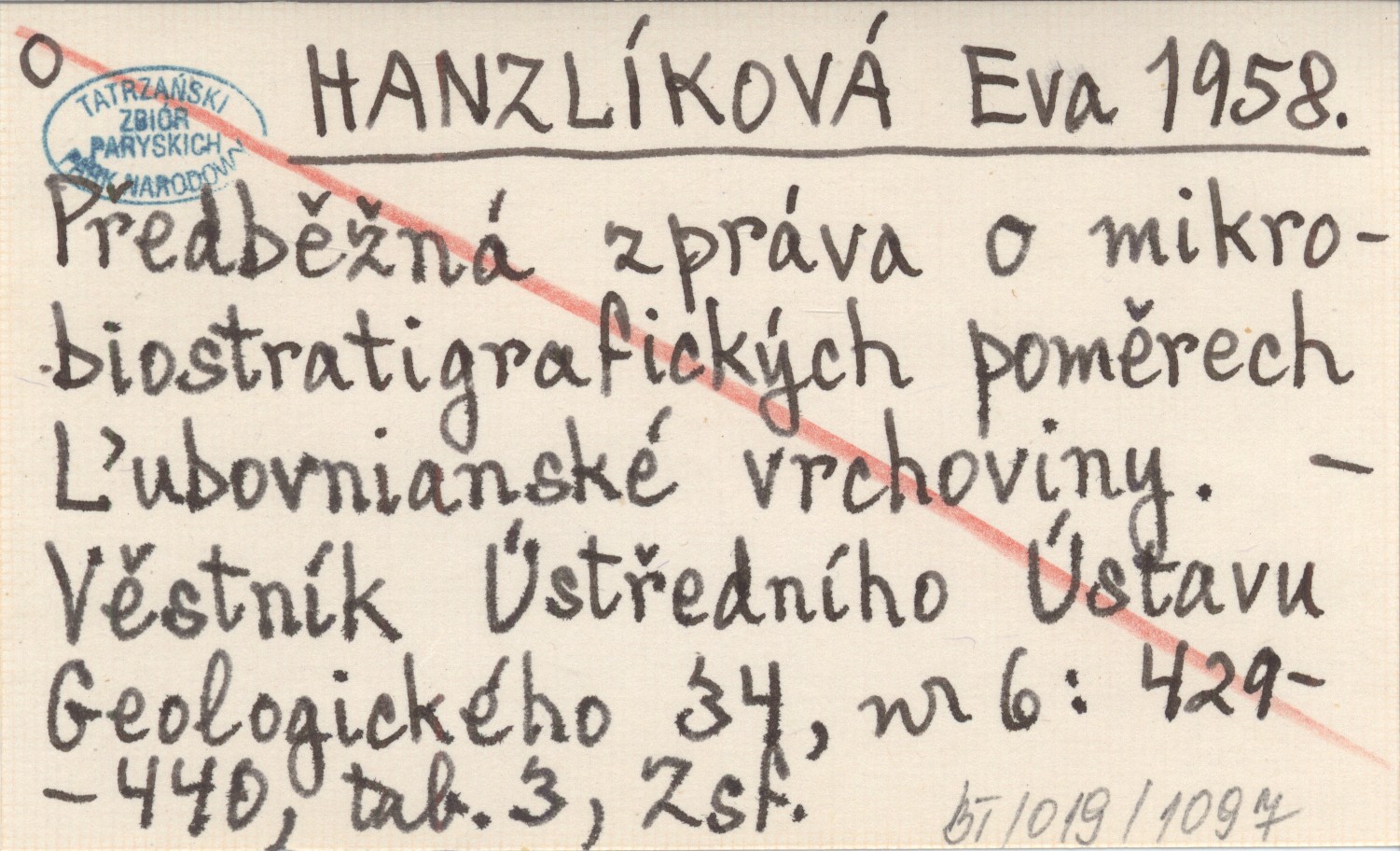 HANZLÍKOVÁ Eva 1958 Předběľná zpráva o mikrobiostratigrafických poměrech Ąubovnianské vrchoviny.