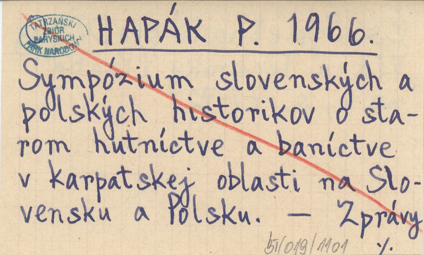 HAPÁK P. 1966 Sympózium slovenských a polských historikov o starom hutníctve a baníctve v karpatskej oblasti na Slovensku a Polski.
