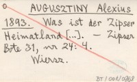 AUGUSZTINY Alexius 1893 Was ist der Zipser Heimatland [...].