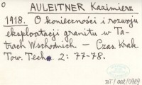 AULEITNER Kazimierz 1918 O konieczności i rozwoju eksploatacji granitu w Tatrach Wschodnich.