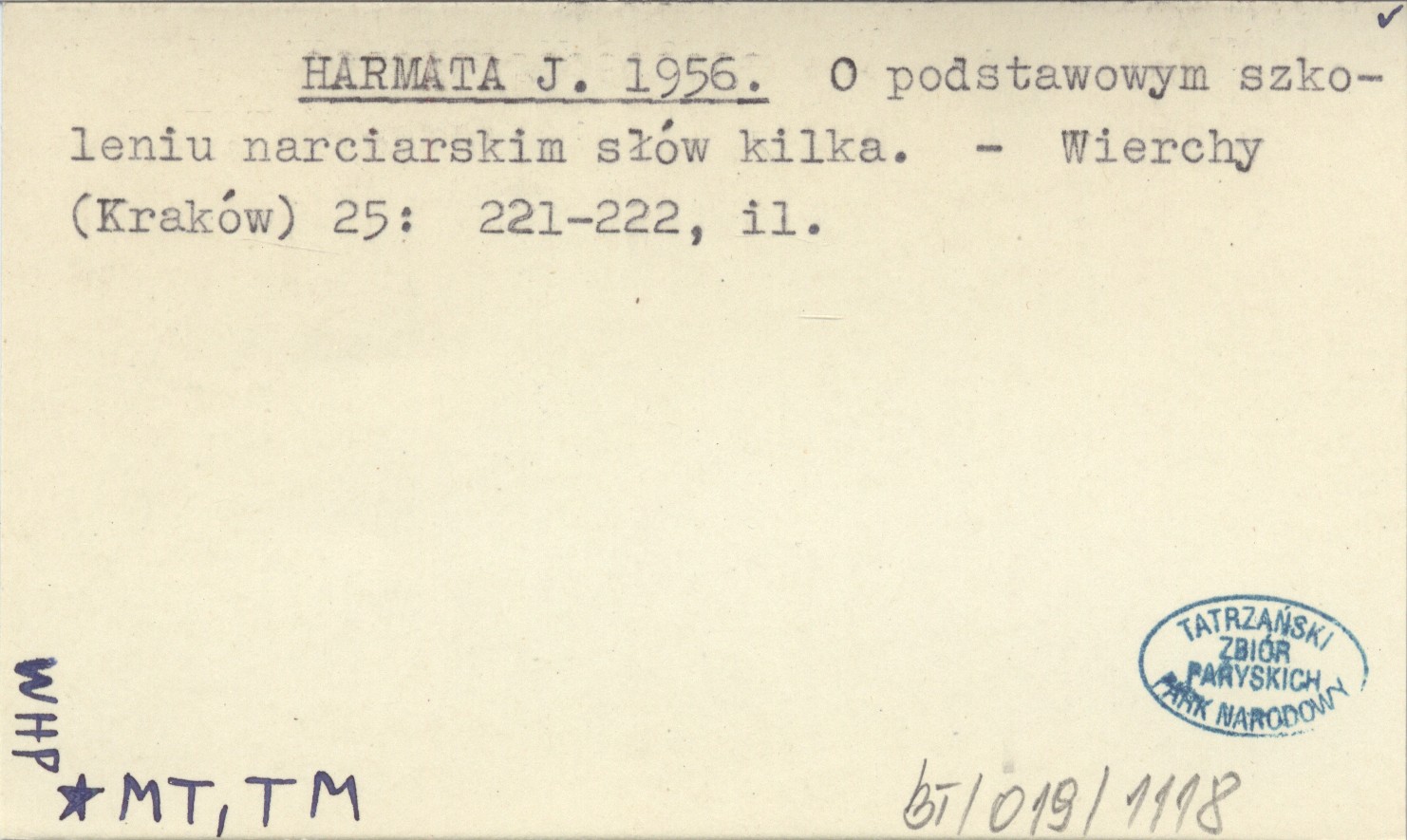 HARMATA J. 1956 O podstawowym szkoleniu narciarskim słów kilka.
