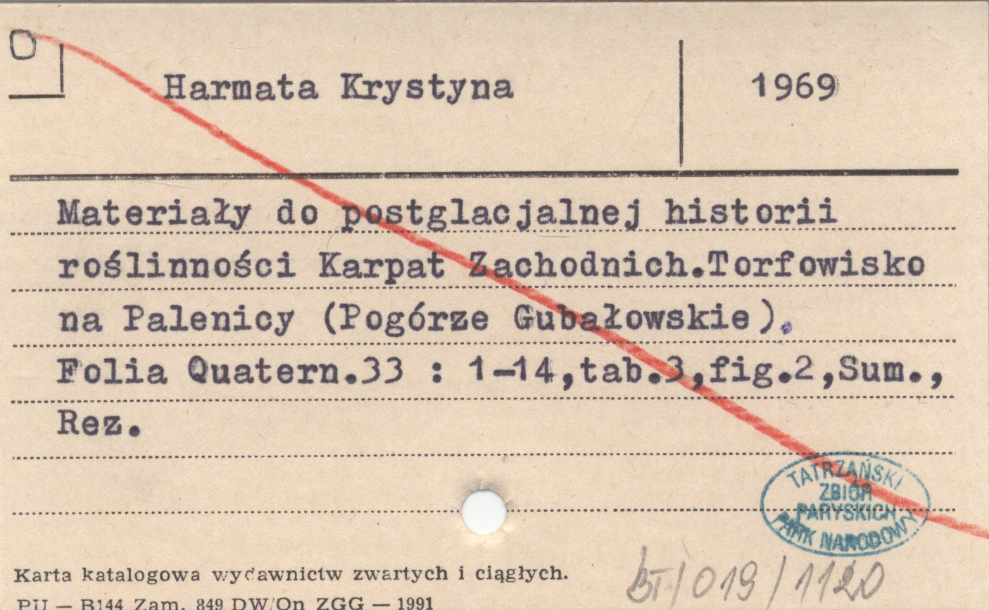 HARMATA Krystyna 1969 Materiały do postglacjalnej historii roślinności Karpat Zachodnich. Torfowisko na Palenicy (Pogórze Gubałowskie).