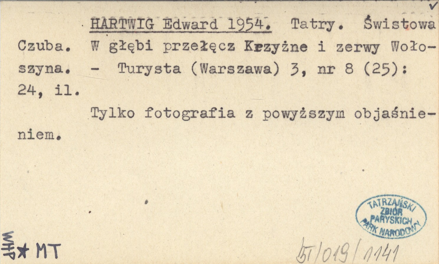 HARTWIG Edward 1954 Tatry. Świstowa Czuba. W głębi przełęcz Krzyżne i zerwy Wołoszyna.