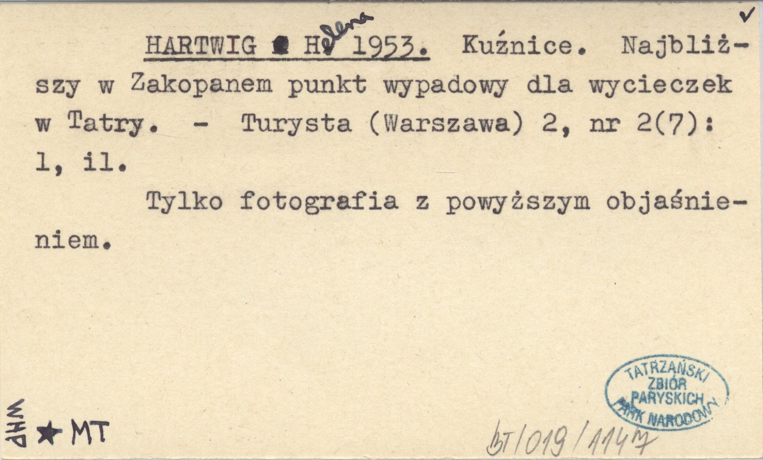 HARTWIG Helena 1953 Kuźnice. Najbliższy w Zakopanem punkt wypadowy dla wycieczek w Tatry.
